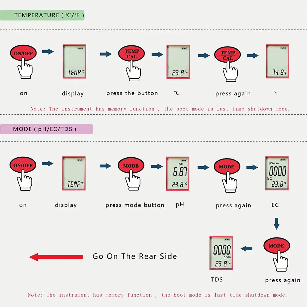 🌊 4-in-1 Function: Measures pH, EC (Electrical Conductivity), TDS (Total Dissolved Solids), and temperature – all in one device.